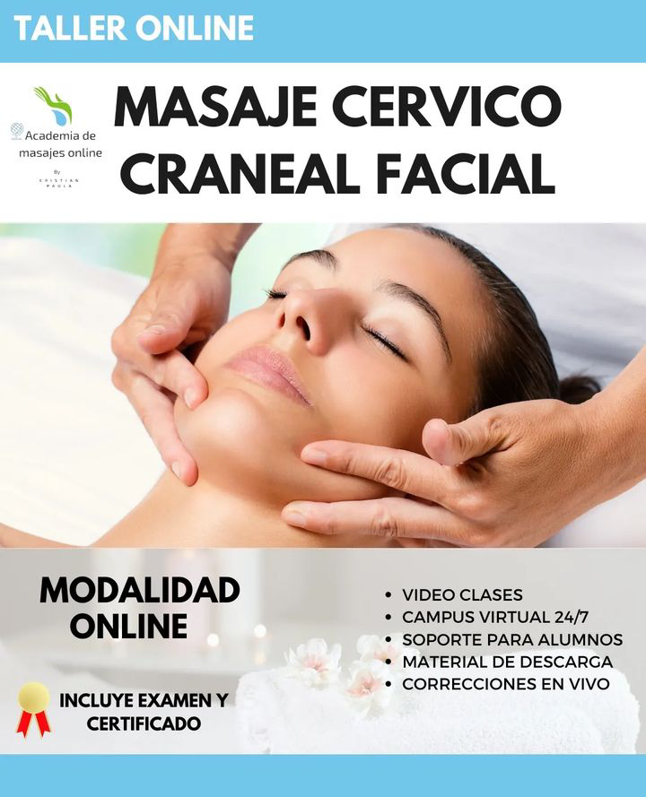 Aprendé masaje cérvico craneal y facial para aliviar tensiones y brindar bienestar, mientras generás ingresos con tu propio servicio. Incluye técnicas específicas, anatomía básica, ficha del paciente, armado del espacio e indicaciones para una experiencia profesional.